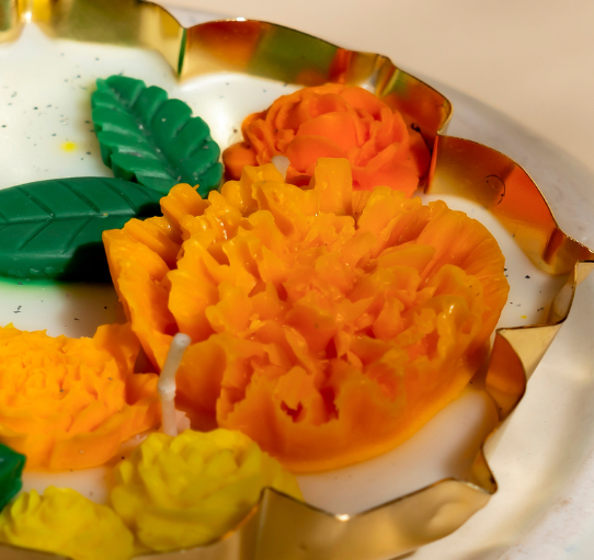 Festival Bloom – Hand-Poured Lotus Urli Candle with Marigold Detailing