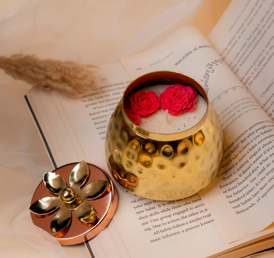 The Hammered Brass Jar Candle by Airlit is a regal blend of tradition and elegance. Hand-poured with natural soy wax, this candle comes in a hammered brass jar topped with a beautifully carved rose lid. Once the candle is finished, the jar can be reused as a chic décor accent or keepsake container.